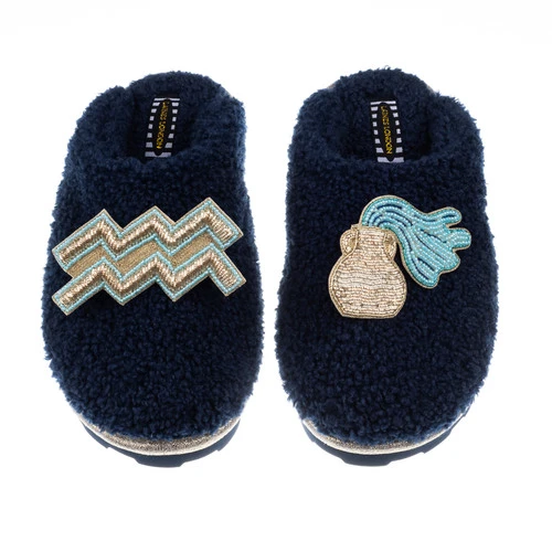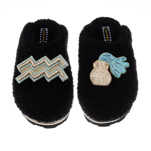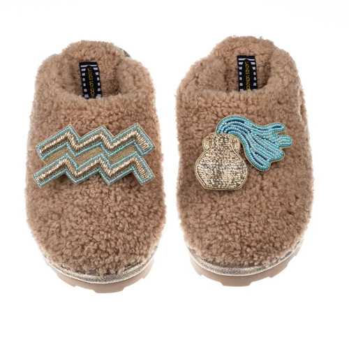 Teddy Closed Toe Slippers With Aquarius Star Sign Brooches