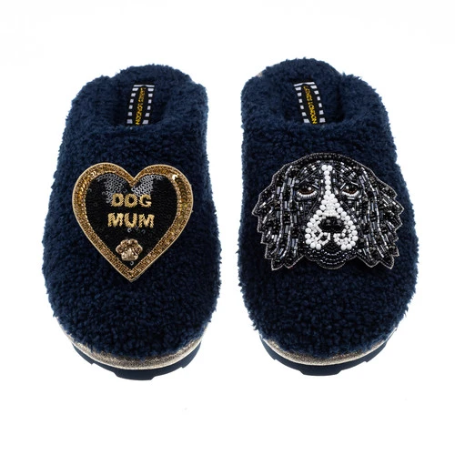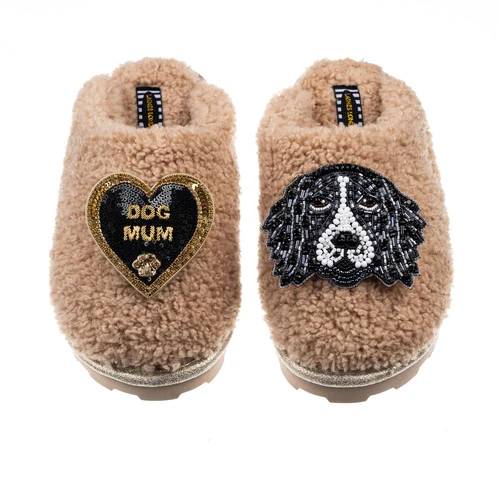 Teddy Closed Toe Slippers With Bentley & Dog Mum Brooches