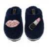 Teddy Closed Toe Slippers With Black & White Stripe Initial Brooch