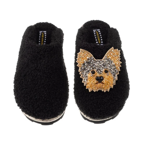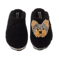 Teddy Closed Toe Slippers With Minnie The Yorkie Brooch