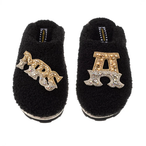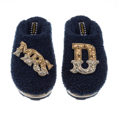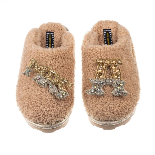 Teddy Closed Toe Slippers With Mrs & Initial Brooches