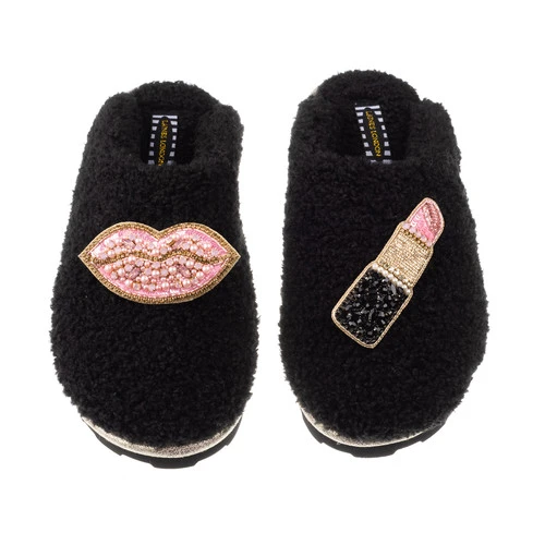 Teddy Closed Toe Slippers With Pink & Gold Pucker Up Brooches