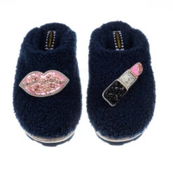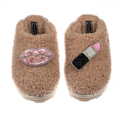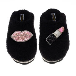 Teddy Closed Toe Slippers With Pink & Silver Pucker Up Brooches