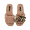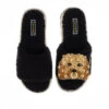 Teddy Towelling Slipper Sliders With Black & Gold Octopus & Shell Brooches