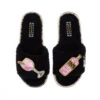 Teddy Towelling Slipper Sliders With Buddy The Boston Terrier Brooch