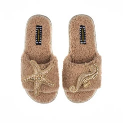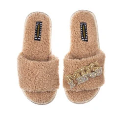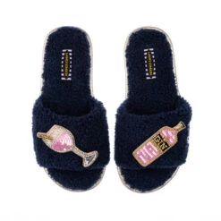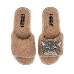 Teddy Towelling Slipper Sliders With Buddy The Boston Terrier Brooch