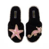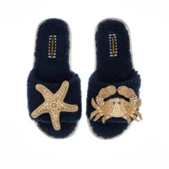 Teddy Towelling Slipper Sliders With Franki & Paw Brooches