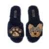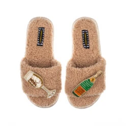 Teddy Towelling Slipper Sliders With Laines Champers Brooches