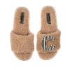 Teddy Towelling Slipper Sliders With Parma Violets & Drumstick Brooches