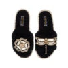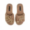 Teddy Towelling Slipper Sliders With Pink & Gold Seahorse & Shell Brooches