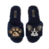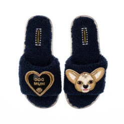 Teddy Towelling Slipper Sliders With Princess & Dog Mum Brooches