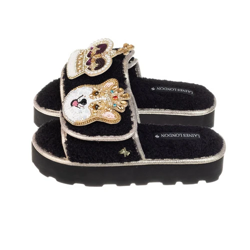 Terry Towelling Flatform Sliders With Corgi & Crown Brooches