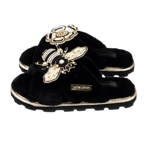 Our Ultralight Chic Slipper / Sliders with stylish deep tread bespoke soles are complete with a stand out gold or silver shimmer binding. These slippers have extra cushioning and are finished off with a satin label for the ultimate comfort , they are perfect for both indoor and outdoor use. Ultra Lightweight and super durable. Artisan brooches are handmade using high grade pearls, beads and crystals